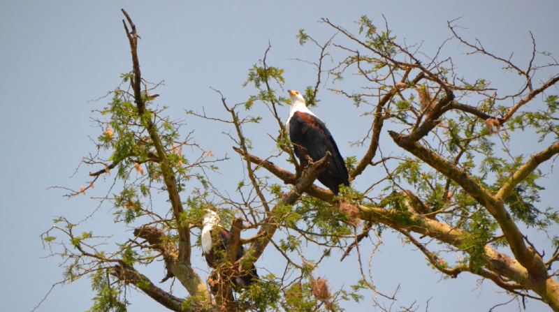 Day 5: After breakfast, bird your way to Ishasha sector with your packed lunch. Look out for species like the Black-headed Heron, African White-backed Vulture, African Harrier-hawk, African Crowned eagle, Helmeted Guineafowl, Black bee eater, Blue–breasted Kingfisher, White-headed Barbet, Double-toothed Barbet, Tinkerbirds, Nubian Woodpecker, Apalises, Greater Honeyguide, White-browed Robin-chat, Sooty Chat, African Moustached Warbler, Zitting Cisticola, CroackingCisticola, Babblers, Copper Sunbird, Grey-backed Shrike, Common Fiscal, Sulphur-breasted Bush-shrike, Black-headed Gonolek, Black-crowned Tchagra, Brown-crowned Tchagra, Fork-tailed Drongo, Starlings, Widowbirds, Finches, Waxbills and many more. Spend the night at a lodge or campsite in Ishasha.